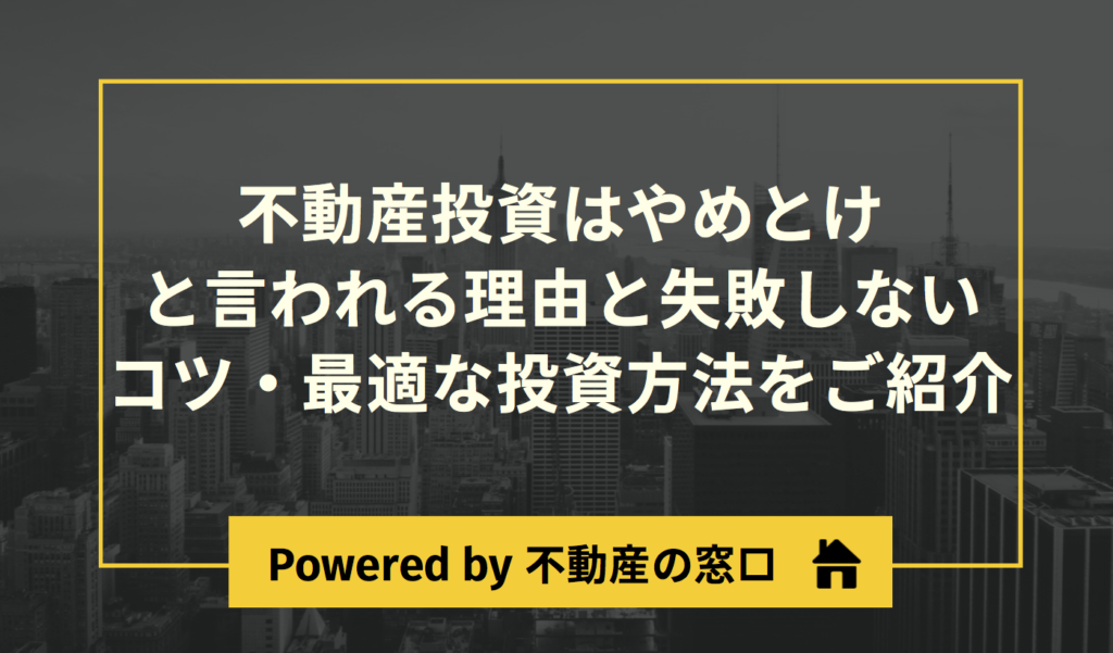 不動産投資はよく耳にする投資法ですが、実際やることを考えると怖いですよね。失敗しないために情報収集している方も多いのではないでしょうか? この記事では、不動産投資が気になる人のためにやめとけと言われる理由や失敗しないコツをまとめました。最... -